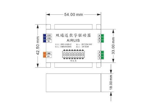 双通道数字驱动器,是一个有两通道输出的驱动器,主要用于双色灯具的亮度和色温控制,比如灯带,灯膜,平板灯等恒压灯具的控制。